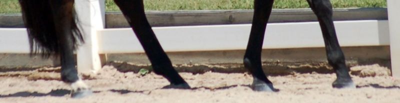 Bij veel paard is het handig de lichte kuitdruk niet met de kuiten maar met de knieën te maken en de onderbenen heel losjes langs de romp van het paard te leggen.